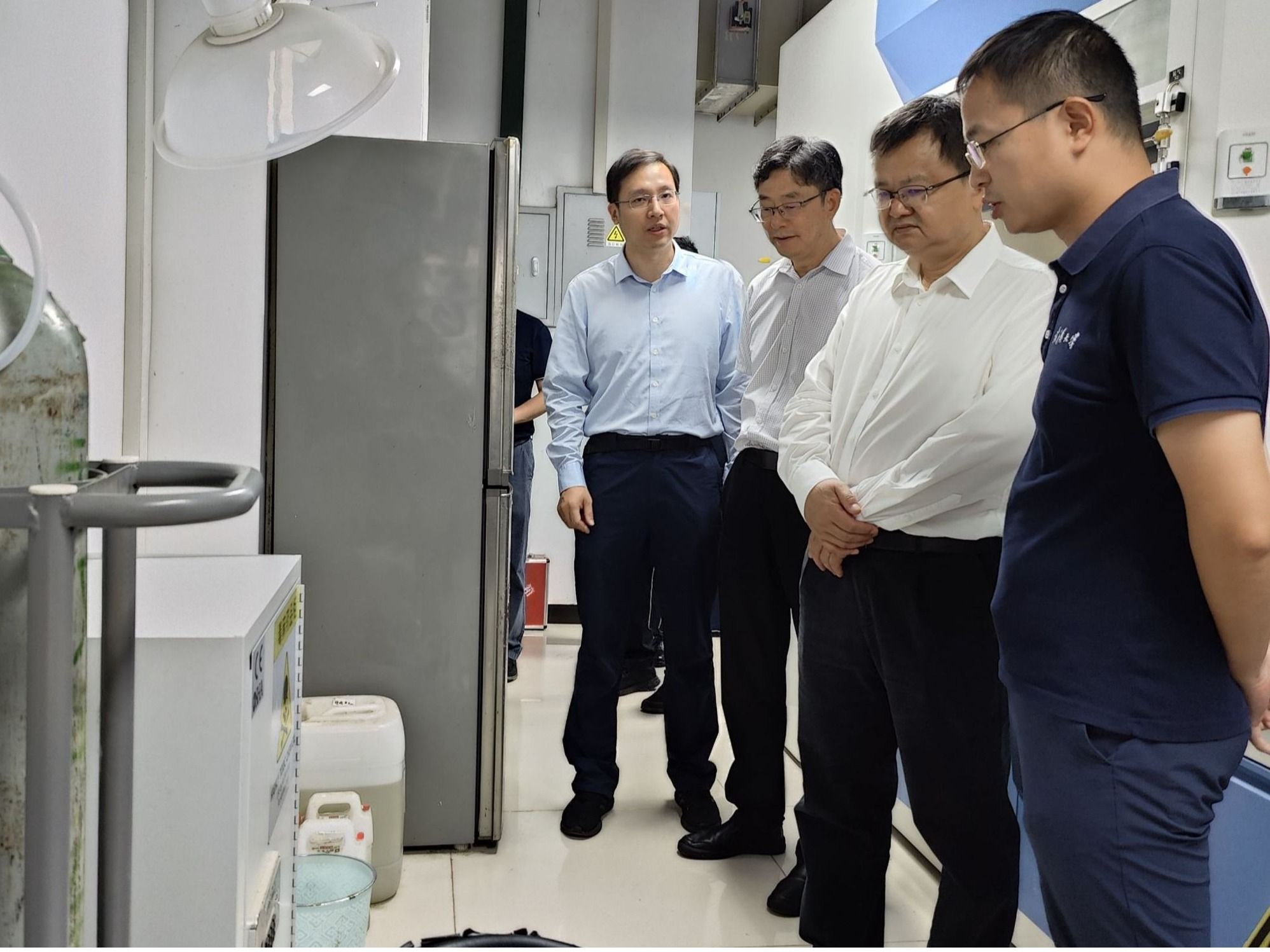 9月27日,董事长张平文、副董事长朱德友及学校相关单位负责人,来公司进行了国庆节前的安全检查,检查组一行先后检查了学院安防监控室、单分子表征实验室及竞技宝官网化学电源实验室。