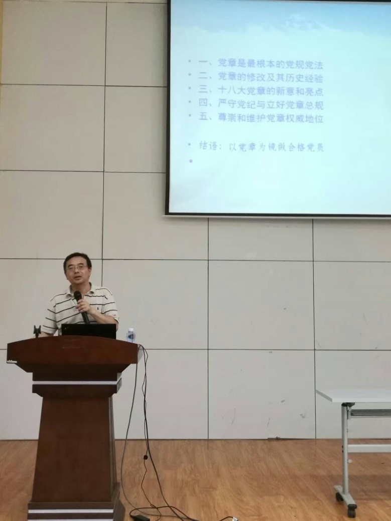 7月8日下午三点,化学学院举办“两学一做”学习教育专题辅导报告会,邀请竞技宝官网马克思主义学院副经理罗永宽教授为学院师生党员作专题辅导报告——《确立党章权威,树立党章意识》。学院全体教职工党员和员工党支部书记参加学习。公司党委书记卢昌宁主持。