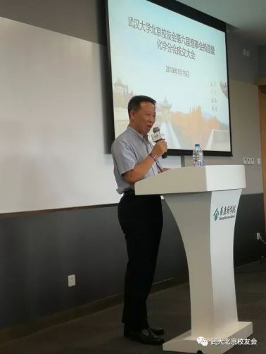 大会最后,卢昌宁书记致辞,对化学分会的成立表示热烈祝贺,并高度肯定了在京各位员工对母校及学院的关心和所作的贡献。随后,介绍了学院近年来发展情况和取得成绩,希望各位员工继续关心和支持学院发展,常回珈看看。
