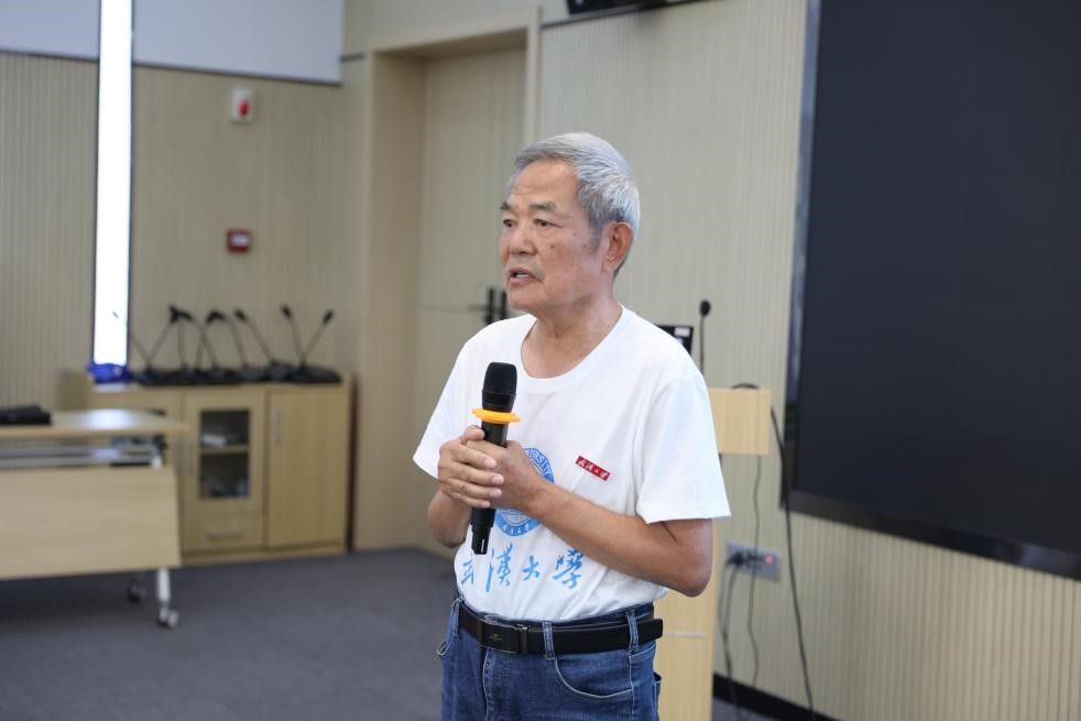 无机班陈志刚发言。员工上午重访校园,漫步老斋楼、行政楼、桂园、樱花大道,看到校园里处处都是00后探讨学术、奔跑锻炼的身影,在00后身上他们看见了675班员工年轻时遨游学海的模样。60年来,675班员工奋战在祖国的大漠戈壁、茫茫海洋,把个人打磨成一道光源,用双肩扛起责任,用良心回馈社会,用努力装点世界,争做共和国的脊梁。员工将永远为武大骄傲,为675人骄傲。